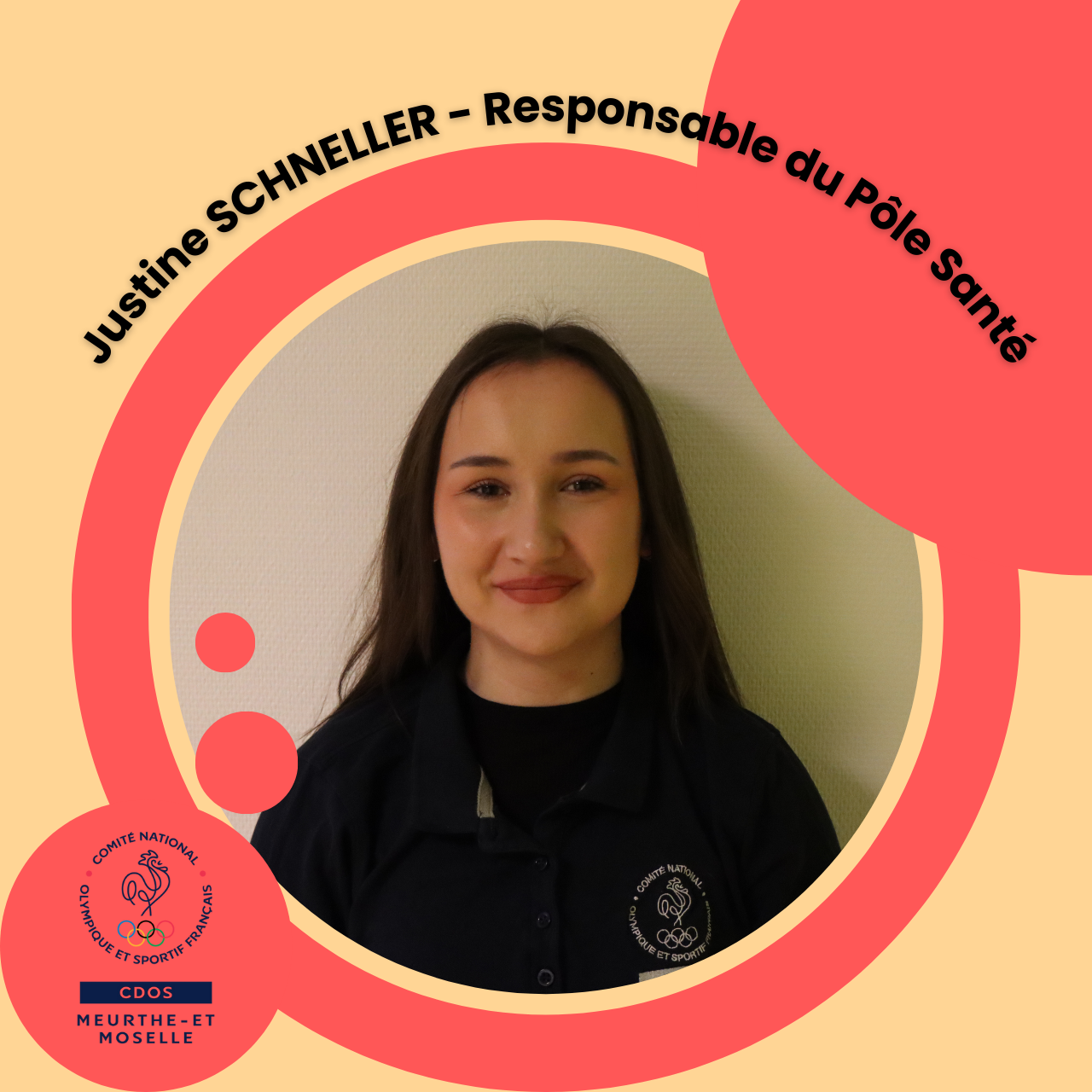 Justine SCHNELLER Chargée de prévention Justine a rejoint l’équipe du CDOS 54 en janvier 2025. Ses missions se concentrent principalement sur le pôle santé et prévention, notamment autour du projet INSPIRE. Elle développe des outils à destination des entraîneurs pour favoriser les compétences psychosociales (CPS) et contribue à la mise en place des « lieux sans tabac ».